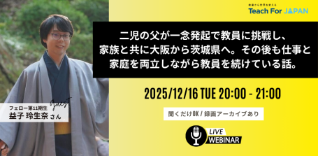 どうして現役教師がTFJフェローに?~「学び続ける教師」で在るために、多様なバックグラウンドの仲間と学び合える環境を探し求めてTFJに参画した話。~