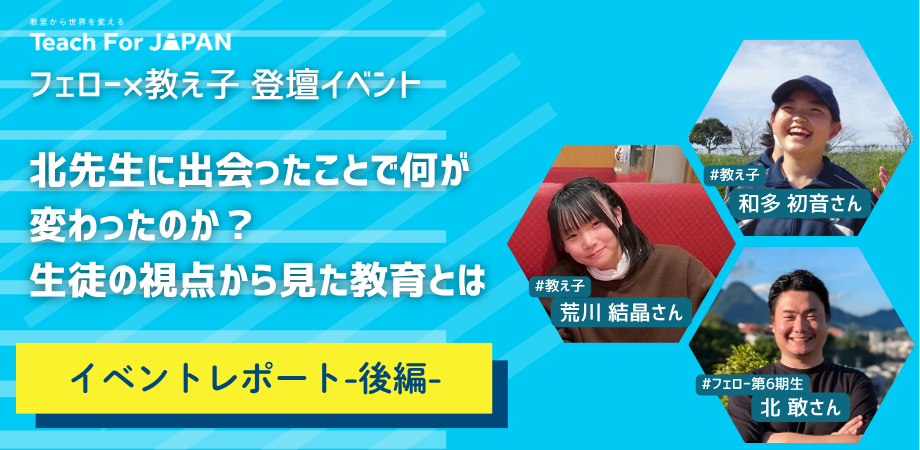 本記事では、Teach For Japan(以下、TFJ)のフェローシップ・プログラムの第6期生として教員になり、現在は一般社団法人Local Educationの代表理事も務める北敢さんと、北さんが小学校で担任をした2名の生徒さんに、どんな思いでどんな取り組みをしてきたのか、質問形式でお答えいただきます。ぜひ最後までご覧下さい。