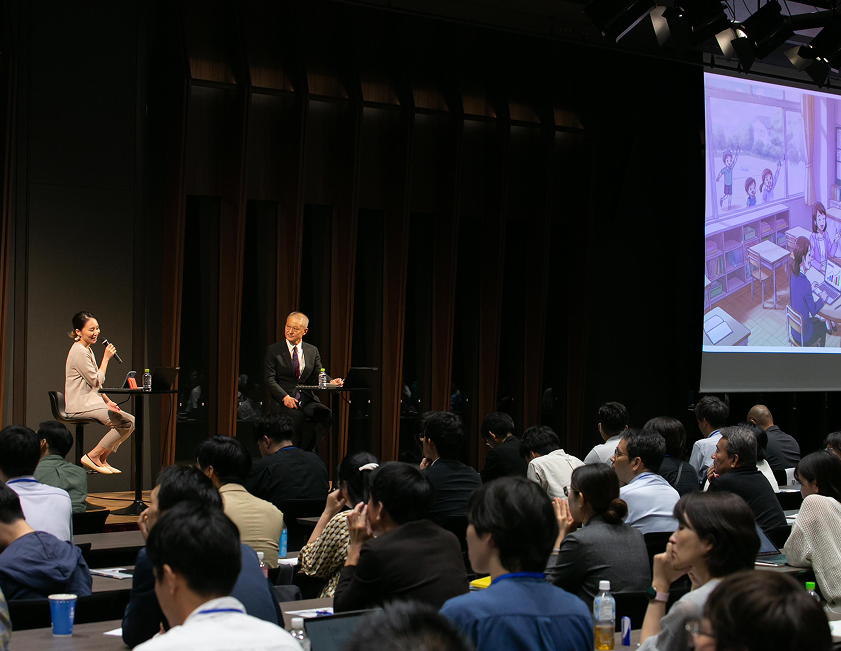 『子どもの学びをより良くする教職員・学校のチャレンジ』をテーマに、株式会社先生の幸せ研究所 代表取締役の澤田真由美さま、文部科学省総合教育政策局政策課 前企画官の廣田貢さまにご登壇いただきました。セッション前半では、学校教育の大きな方向性や動きに触れていただきながら、子どもたちの学びをより良くする学校や教職員の取り組み事例をご紹介いただきました。